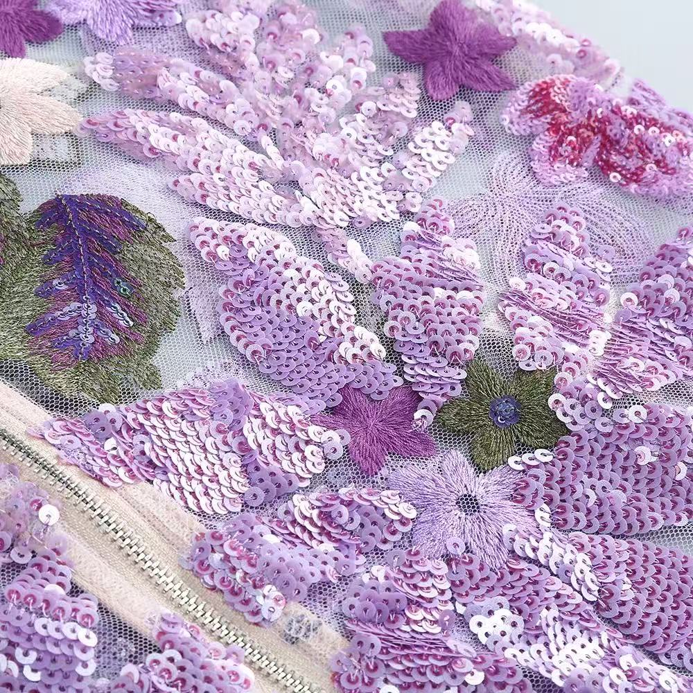 Elara Floral Sequin Embroidered Strapless Maxi Dress - Purple